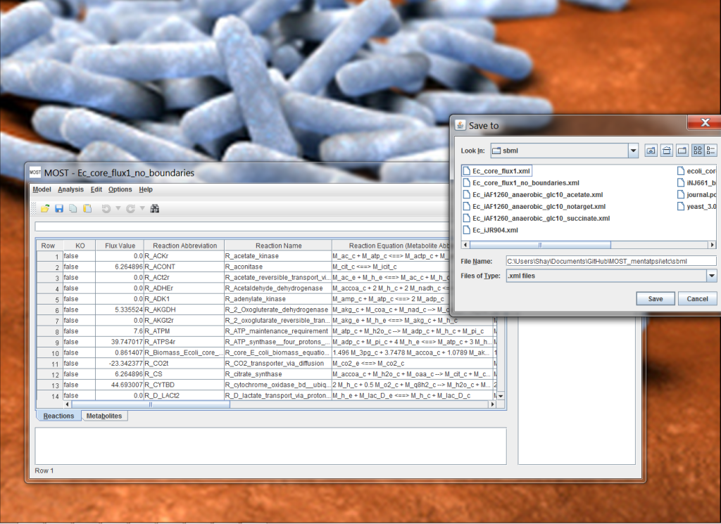 MOST (Metabolic Optimization and Simulation Tool) is a software package that implements GDBB (Genetic Design through Branch and Bound) in an intuitive user-friendly interface with Excel-like editing functionality, as well as implementing FBA (Flux Balance Analysis), and supporting SBML (Systems Biology Markup Language) and CSV (Comma-Separated Values) files. GDBB is currently the fastest algorithm for finding gene knockouts predicted by FBA to increase production of desired products, but GDBB has only been available on a command line interface, which is difficult to use for those without programming knowledge, until the release of MOST.