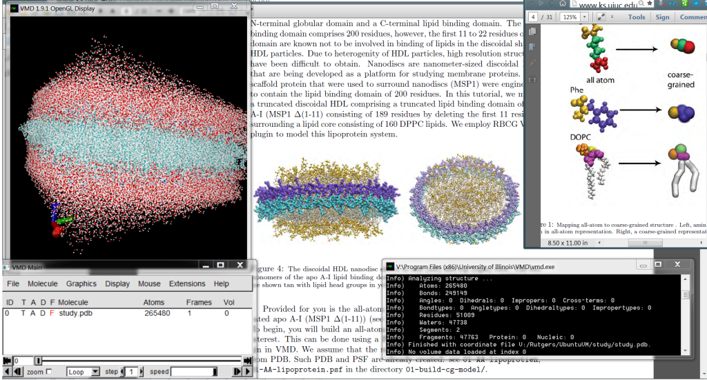 Under a Physics Independent Study, worked on simulating and analyzing coarse grain models of lipid bilayer membranes using Molecular Dynamics software packages (GROMACS, NAMD, VMD) and TCL. The main focus was the recreation of the simulation in the study “Phase Separation in a Lipid/Cholesterol System: Comparison of Coarse-Grained and United-Atom Simulations.”